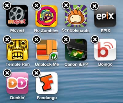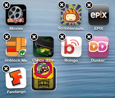 第 1 步:将手指放在要放入文件夹中的应用程序之一上,直到该应用程序晃动并发出提示音X出现在左上角。