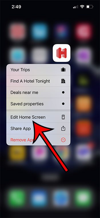 第 2 步:点击并按住应用程序图标,然后选择编辑主屏幕选项。