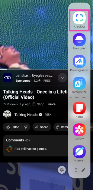 AI Select 是三星 One UI 7 操作系统上的一项新 Galaxy AI 功能。可以从三星手机的边缘面板选择此工具。 AI Select 会扫描手机屏幕上的内容,并让您以创造性的方式与其进行交互。您可以使用它执行以下操作: