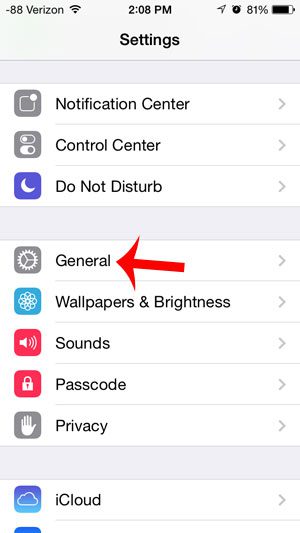 步骤 2:向下滚动并选择一般的选项。