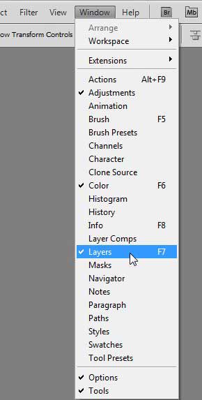 第 2 步:点击窗户窗口顶部,然后确认已选择“图层”选项。