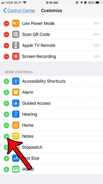 您可以通过以下方式将 Notes 应用程序添加到 iPhone 上的控制中心:设置 > 控制中心 >然后点击旁边的绿色+笔记。然后,您可以从锁定屏幕右上角向下滑动,然后点击笔记图标来创建新笔记。