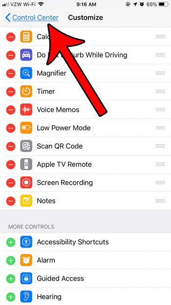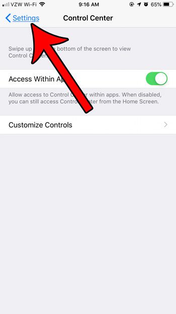 第 5 步:点击控制中心按钮位于屏幕的左上角。