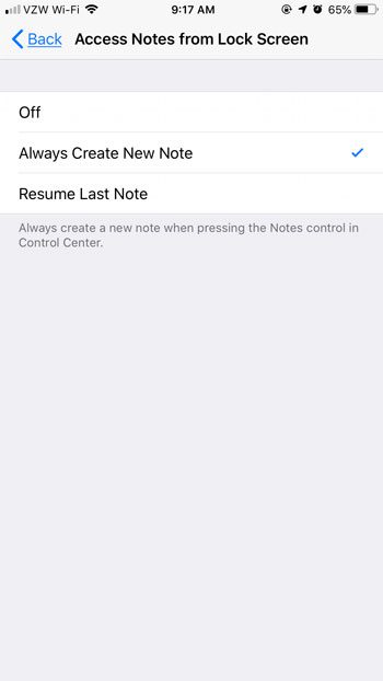 第 9 步:选择始终创建新笔记选项,然后按家屏幕下方的按钮可退出“设置”应用程序。