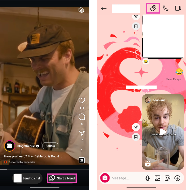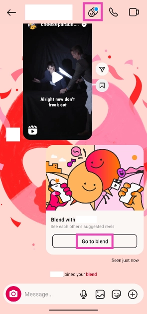 打开与朋友的 Instagram 对话,点击屏幕顶部的混合图标,然后点击“邀请”。如果您在屏幕上没有看到混合图标,请在聊天中打开任何卷轴,然后点击“开始混合”。