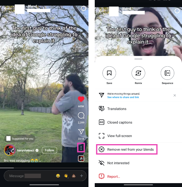 如果您不希望某个卷轴出现在混合中,您可以选择将其删除。唯一的问题是它将从您所属的所有混合中删除。您可以使用表情符号和消息与混合上的卷轴进行交互。这些消息和表情符号反应会与 Reel 一起显示在聊天中。 Instagram 每天都会更新并融合新内容。