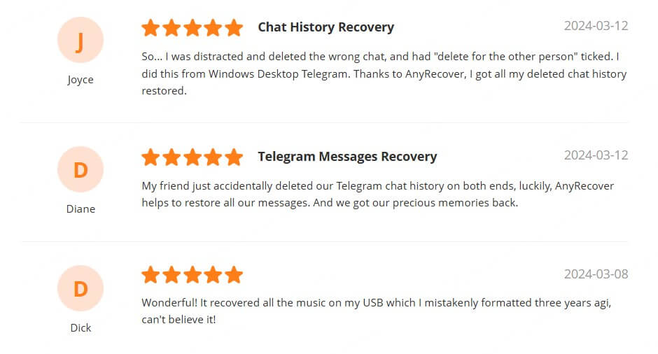 如果上述方法不起作用,您可以尝试使用 AnyRecover 等数据恢复软件来恢复已删除的 Telegram 消息、视频和照片。