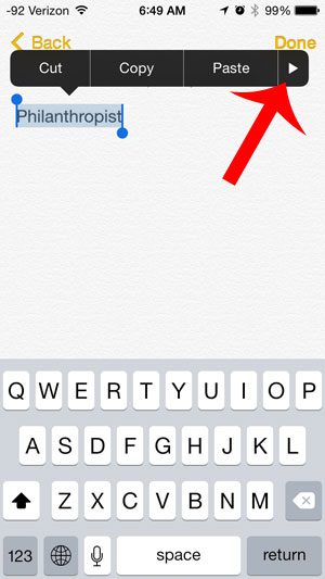 步骤 3:点击并按住您想要定义的单词,然后触摸定义按钮。