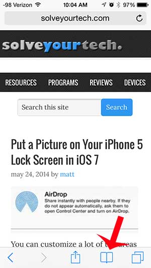 步骤 2:触摸屏幕底部的书籍图标。如果您在底部没有看到菜单栏,则可能需要向上滚动页面才能显示菜单栏。