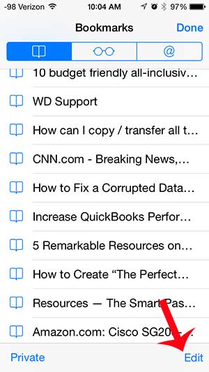 在 iOS 7 的 Safari 中删除 Safari 书签