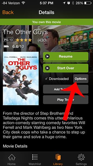 Amazon Instant 应用程序仅允许您在连接到 Wi-Fi 时通过其 iOS 应用程序流式传输电影。因此,如果您想在没有 Wi-Fi 的地方观看电影,则需要将电影下载到您的设备上。