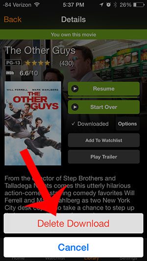 第 5 步:触摸删除下载按钮以确认您希望从设备中删除下载的视频。