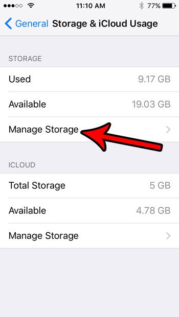 第 4 步:触摸管理存储选项中的贮存菜单部分。