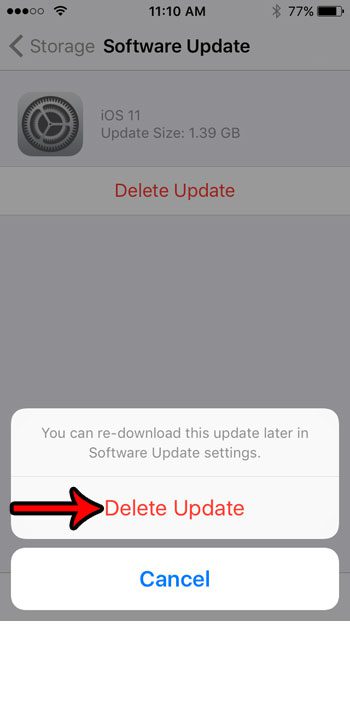 第 7 步:触摸删除更新再次按钮以确认您要从设备中删除下载的更新文件。