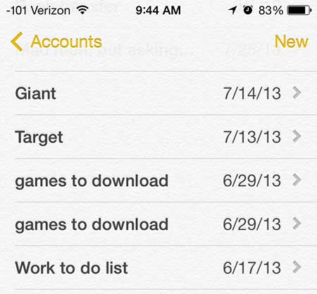 现在您已经知道如何在 iPhone 上的 iOS 7 中删除笔记,您可以滚动设备上的笔记列表,删除任何旧的或无用的笔记,这些笔记只会堵塞应用程序的界面。