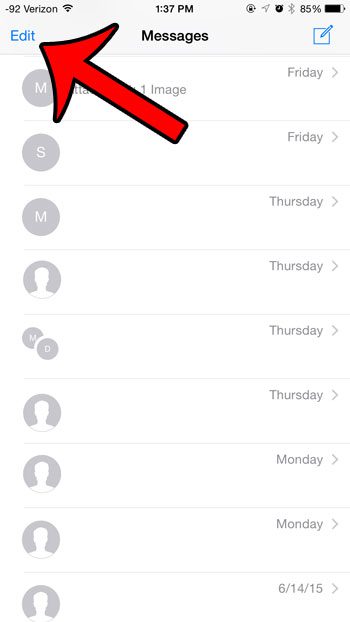 下面我们的指南继续提供有关如何在 iPhone 6 上删除短信对话的更多信息,包括这些步骤的图片。