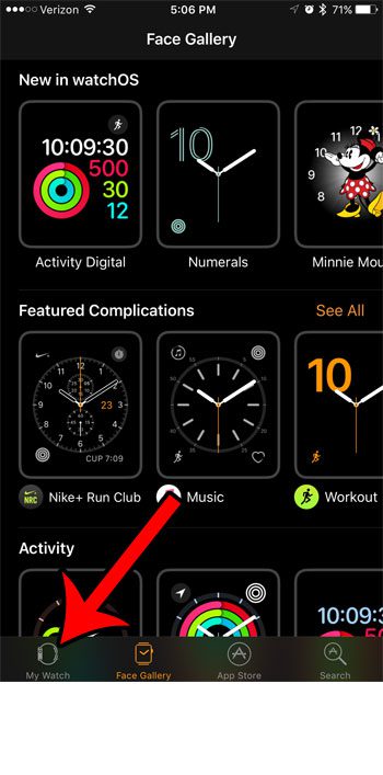 第 2 步:选择我的手表屏幕底部的选项卡。