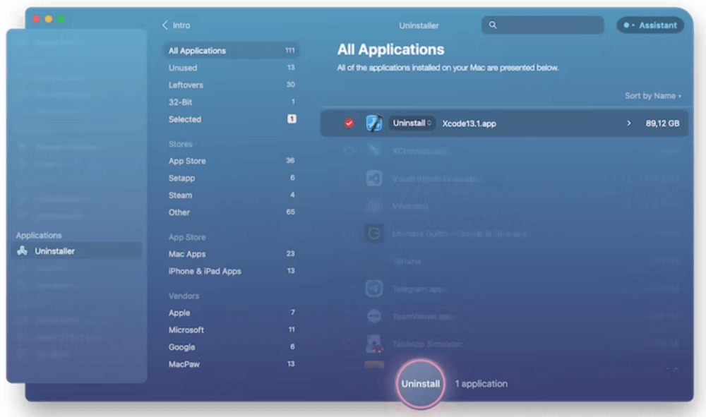 使用CleanMyMac X删除不需要的应用程序很简单。选中您要卸载的应用程序旁边的复选框,然后单击卸载按钮位于窗口底部。