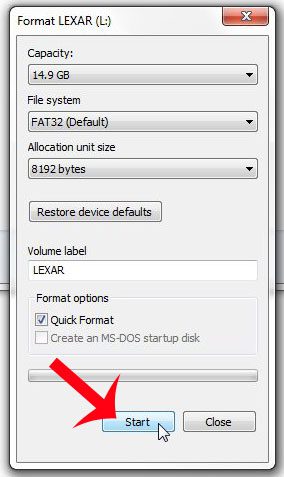 本文中的步骤是在 Windows 7 操作系统上执行的。其他操作系统也将为您提供格式化 USB 闪存驱动器的功能,但步骤可能略有不同。
