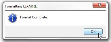 第 7 步:单击好的弹出窗口上的按钮显示格式完成,然后单击关闭按钮上的格式窗户。