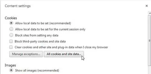 第 5 步:单击所有 cookie 和网站数据按钮在曲奇饼窗口的一部分。
