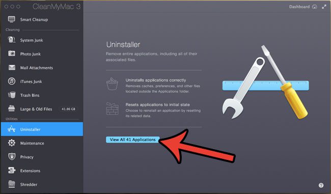 本节中的步骤将讨论如何使用 CleanMyMac 应用程序中包含的卸载程序功能。这将让您卸载应用程序并完全删除与该应用程序关联的所有安装文件。