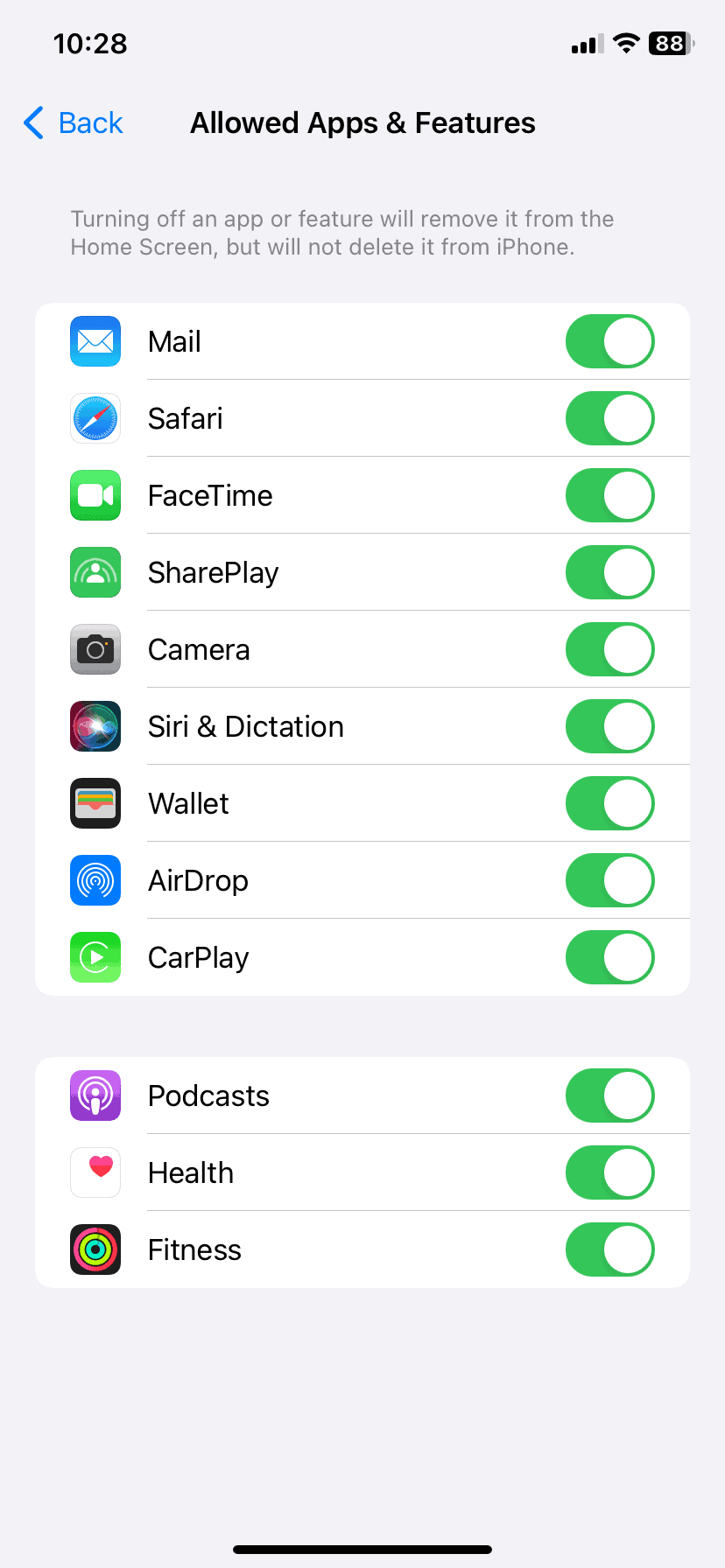 重要提示:从锁定屏幕禁用相机也会完全禁用它。在“屏幕时间”设置中重新启用相机应用程序之前,您将无法从主屏幕或任何其他位置访问相机应用程序。
