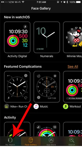 步骤 2:触摸我的手表屏幕左下角的选项卡。