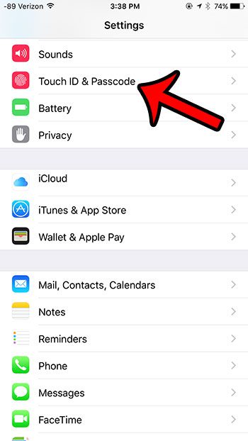 步骤 2:向下滚动并选择触摸 ID 和密码选项。