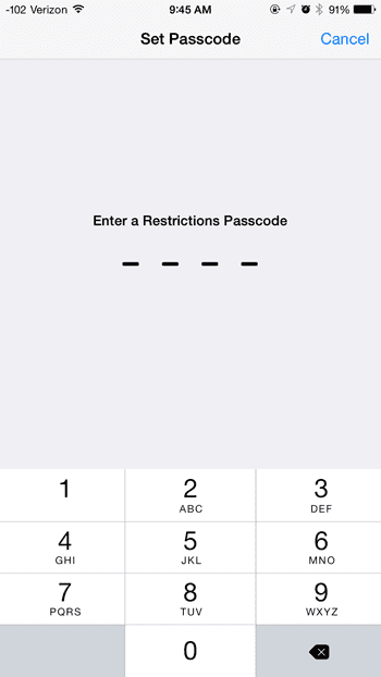 - 步骤 5:创建返回此屏幕以调整任何设置所需的密码。此密码可能与用于解锁设备的密码不同,但请务必将其记在某处,因为如果没有密码,则很难访问“限制”菜单。