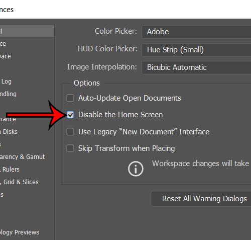 现在您已经知道如何在 Photoshop CC 中禁用主屏幕,您可以在尝试使用该应用程序时防止出现该附加屏幕。