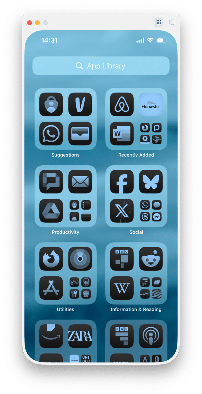 - 要打开应用程序,请在主屏幕或应用程序切换器中单击它。您还可以通过单击文件夹来打开它们。