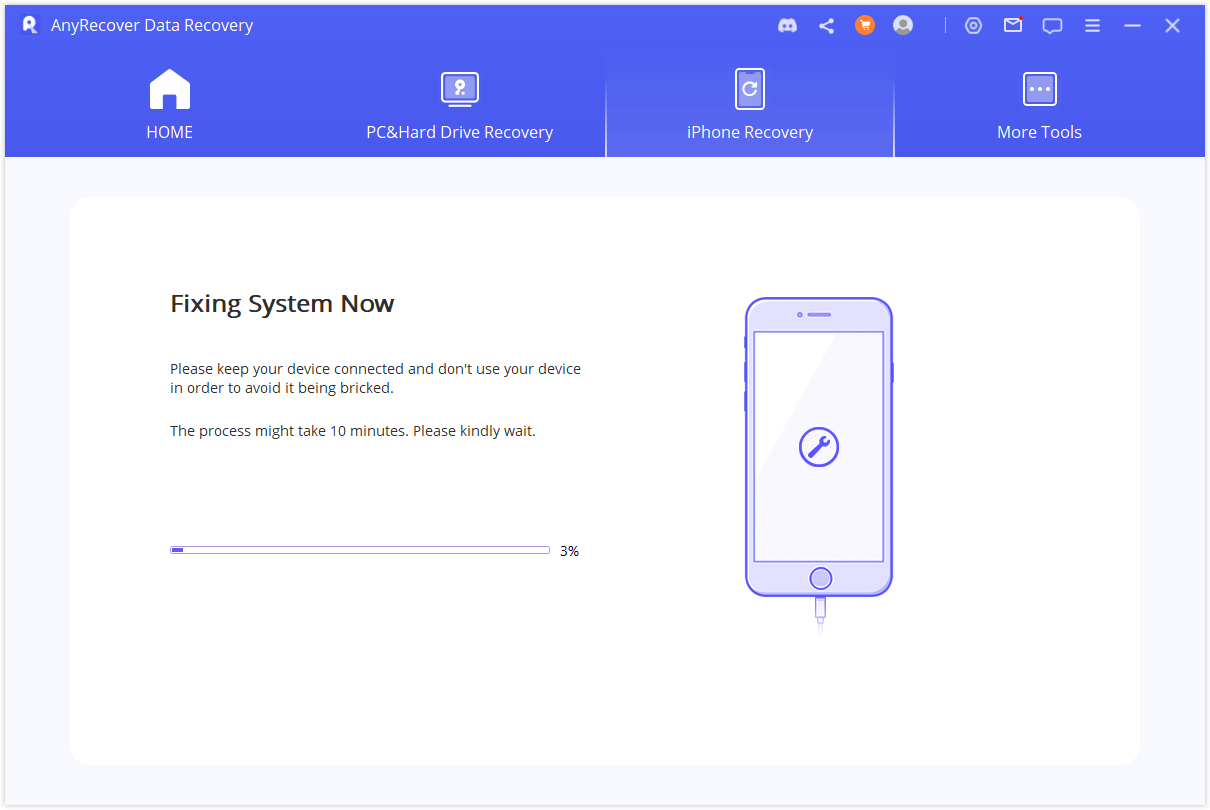 第4步:让整个过程不间断地完成。降级完成后,您的 iPhone 将重新启动,您将在 AnyRecover 中看到“完成”消息。