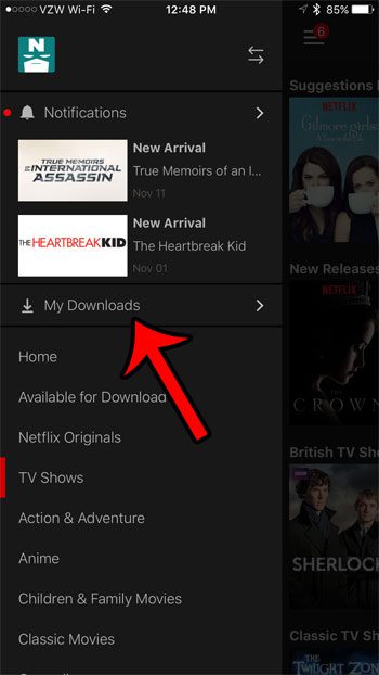 然后选择我的下载选项。 (请注意,还有一个可供下载如果您想查看可以下载哪些视频,也可以在此菜单上选择。)