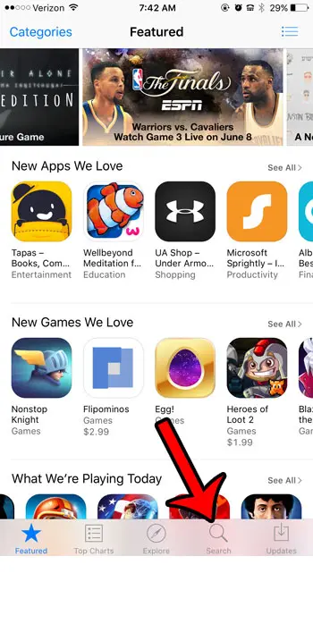 下面我们的文章继续提供有关在 iPhone 6 上下载应用程序的更多信息,包括这些步骤的图片。