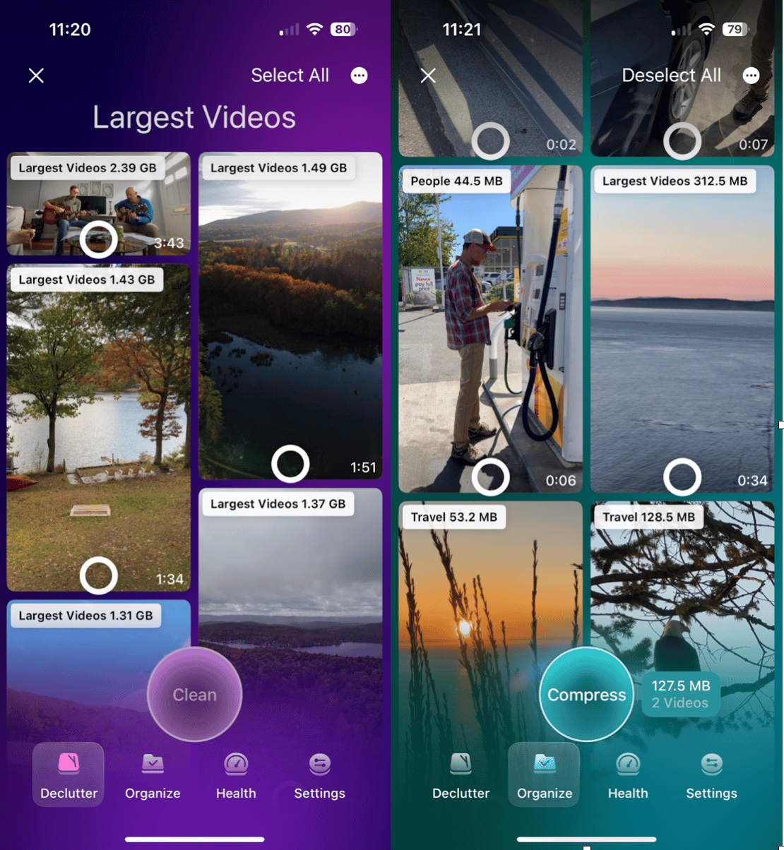 下载的视频可能会占用大量空间,尤其是高清视频。使用类似的工具定期清理文件是个好主意CleanMy®手机。 CleanMy®Phone 的最大视频和压缩视频功能使您可以轻松: