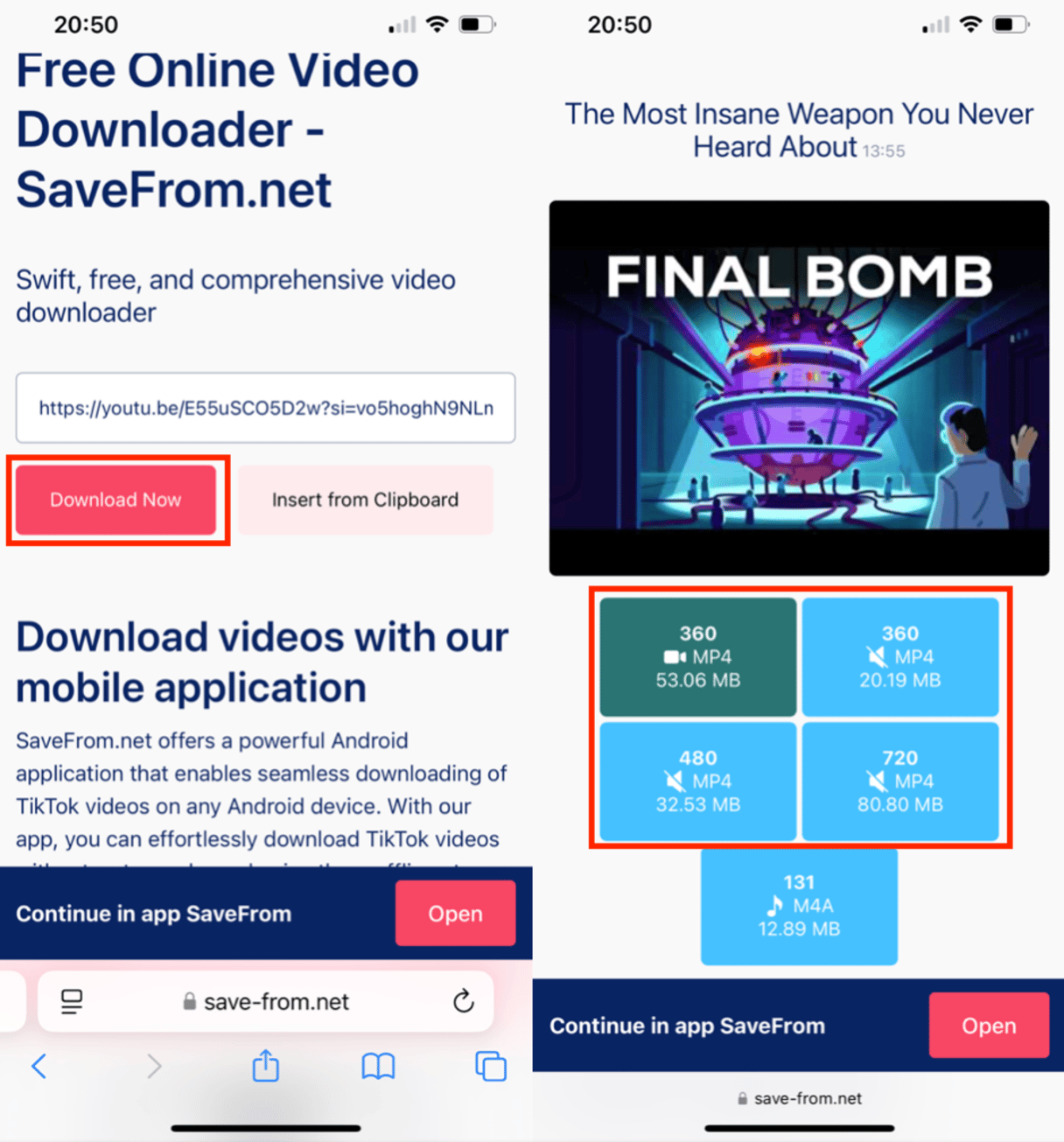 您可以使用 SaveFrom.net 或 Y2Mate 等第三方网站将 YouTube 视频直接下载到您的 iPhone,而无需订阅 YouTube Premium。