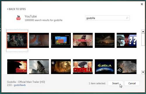 - 选择要嵌入到 Powerpoint 2013 中的视频,然后单击插入按钮。