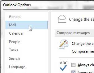 第四步:点击邮件在左侧的列中展望选项窗户。