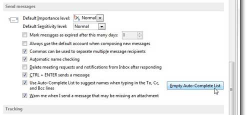 如何清空 Outlook 2013 中的自动完成列表