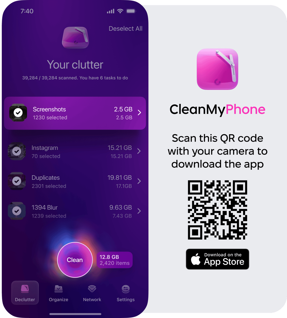 - 下载CleanMy®手机并在您的 iPhone 上打开它。如果这是您第一次使用该应用程序,请授予 CleanMy®Phone 访问您的照片库所需的权限。