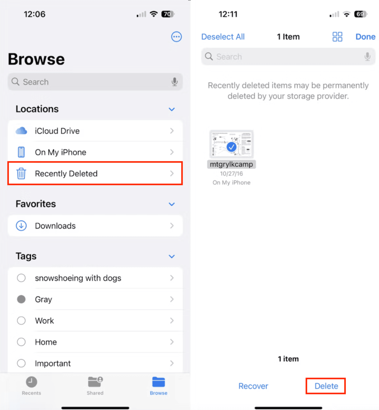 - 点击您想要永久删除的所有最近删除的项目。