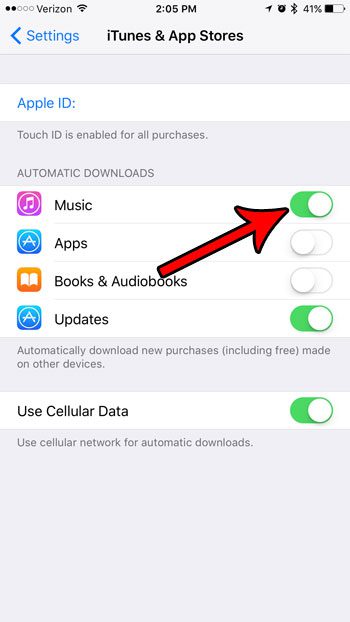 我们的指南在下面继续提供有关如何启用 iPhone 自动音乐下载的更多信息,包括这些步骤的图片。