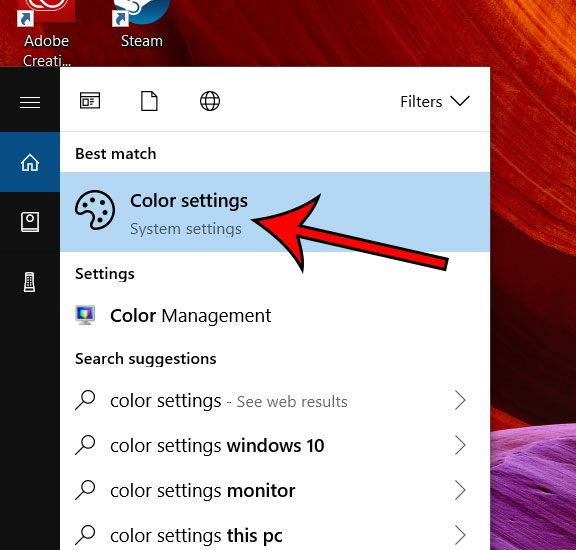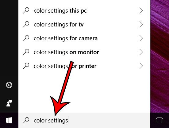 步骤 1:在屏幕右下角的搜索字段中输入“颜色设置”。