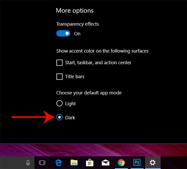 步骤 3:向下滚动菜单并单击黑暗的下的选项选择您的默认应用程序模式。