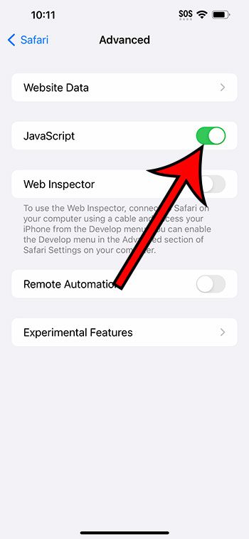 我们的指南在下面继续提供有关 iPhone 14 Safari Javascript 设置的更多信息,包括这些步骤的图片。
