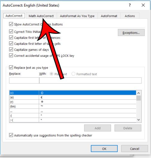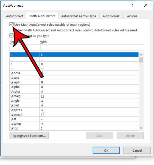 我们的指南在下面继续提供有关如何在 Word 中启用数学自动更正的附加信息,包括这些步骤的图片。