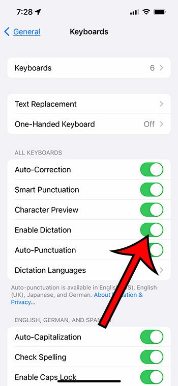 我们的指南在下文中继续提供有关如何在 iPhone 13 上启用或禁用听写的更多信息,包括这些步骤的图片。