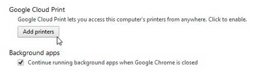第五步:滚动到页面底部,然后单击添加打印机按钮下谷歌云打印。