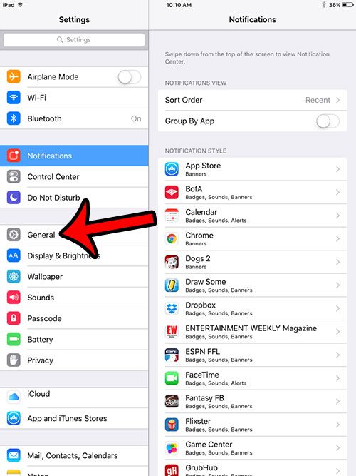 第 2 步:点击一般的屏幕左侧栏中的选项。